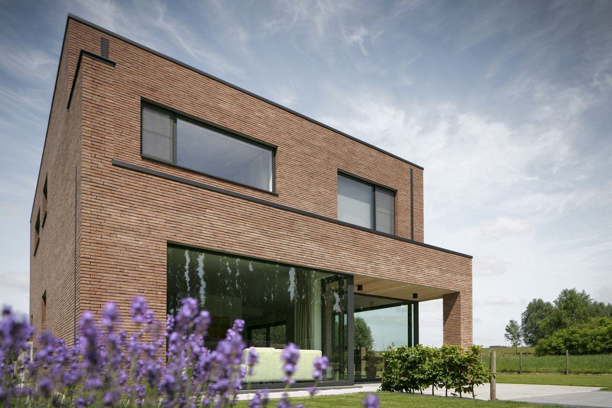 Modernealuminium ramen en deuren voor nieuwbouw villa in Gavere (Oost-Vlaanderen), geplaatst door Geco.